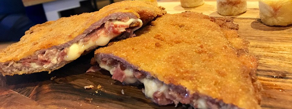 - Cachopo ibérico: con presa ibérica, jamón de bellota y queso curado.